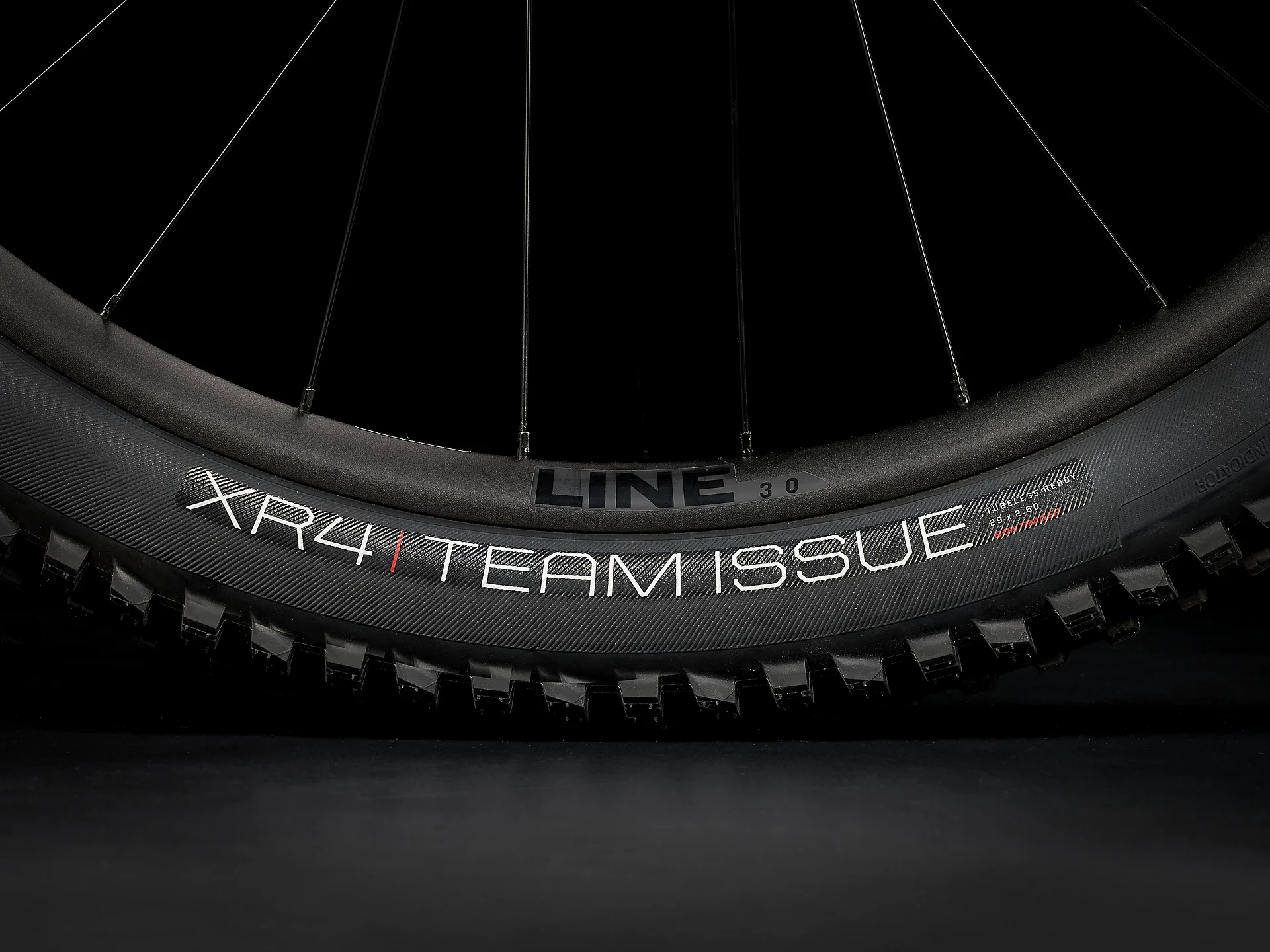 Pneus: Bontrager XR4 Team Issue, Tubeless Ready, protection des flancs Inner Strength, tringle en aramide, 120 TPI, 29 x 2.60 (S/M/ML/L/XL)